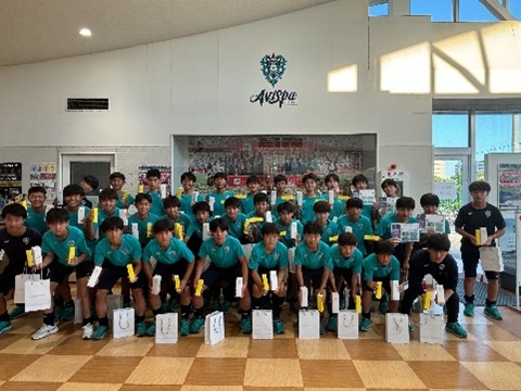 七夕に合わせて、アビスパ福岡トップチームの選手からアカデミー選手への直筆メッセージがはいった七夕カードを作成いただきました。その七夕カードにはアカデミー選手による夢や願いが記され、目標に向かって努力する決意を新たにする機会となりました。さらに、「パーフェクトワン モイスチャージェル」「パーフェクトワン SPモイスチャーUV」など人気商品をプレゼントいただきました。