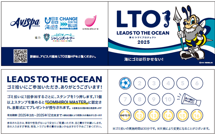 「LEADS TO THE OCEAN(通称:LTO)海につづくプロジェクト」とは、「海にゴミは行かせない!」をテーマに海をきれいにすることを目的としたゴミ拾い活動です。海ゴミの約8割が川、街からやってきます、街のゴミは人の心が出します。このスタジアムのゴミも海へと続いていくのです。今シーズンからスタジアム周辺のクリーン活動を継続的に実施していきます。