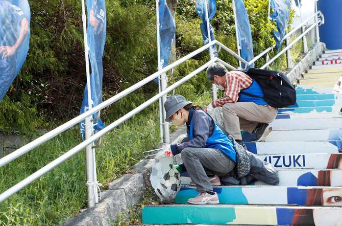 ファン・サポーターの皆さまと共に、スタジアム周辺の清掃活動を行います。