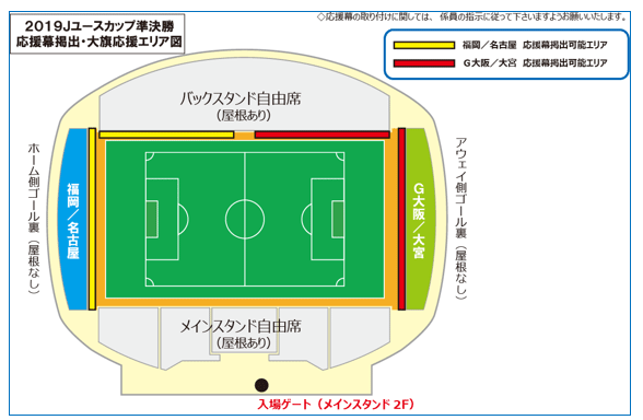 - ・福岡/名古屋…ホーム側ゴール裏及びバックスタンド最前列