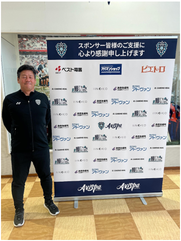 弊社は福岡を拠点に、ドキュメンタリーを中心とした映像制作で地場企業の想いを形にしています。代表自身がアビスパ福岡アカデミーの出身であり、育てていただいた恩返しとして、この度微力ながら支援させていただきました。新調されたバックボードやテントを背に、選手たちが夢に向かって躍動することを心より応援しております。