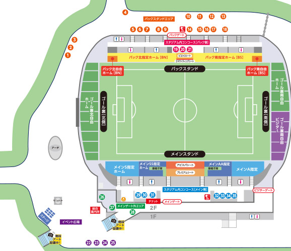 スタジアム内の総合案内や、お近くのスタッフへお気軽にお問い合わせください。
