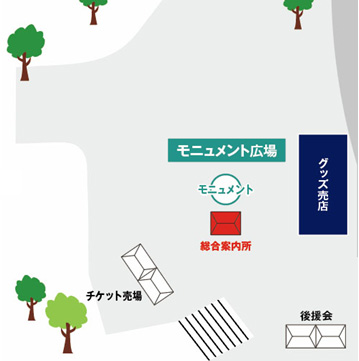 - モニュメント広場グッズ売店、バックスタンドグッズ売店