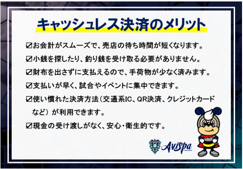 弊クラブでは、昨シーズンよりスタジアム内グッズ売店において、キャッシュレス決済のテスト運用を行い、レジ待ち時間の短縮や混雑緩和などについて検証を進めてまいりました。