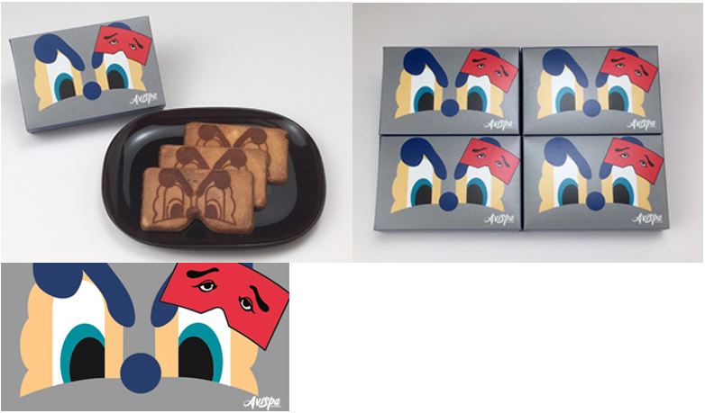 福岡でお馴染みの懐かしい味「二○加煎餅」にアビーくんの顔の焼印が押されています。