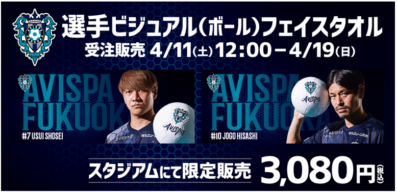 4月11日(土)長崎戦より、アビスパ福岡のオリジナルボールをもった選手のオリジナルグッズを販売いたします。