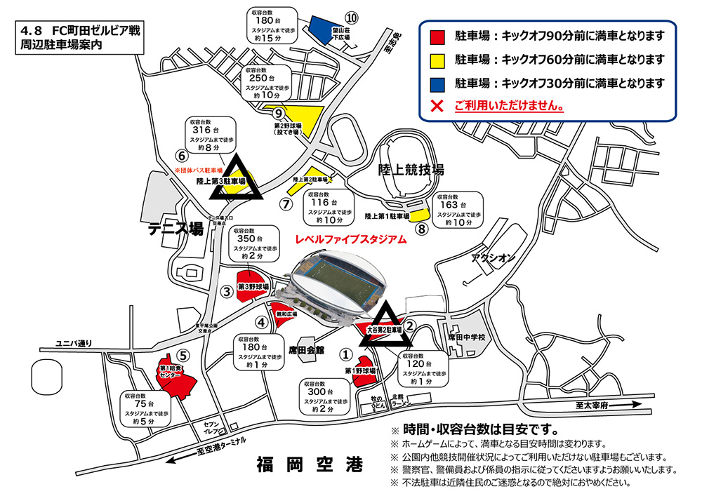 4/8(土)町田FC戦のレベルファイブスタジアム周辺駐車場についてご案内いたします。