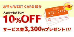 ・その日のお食事から1年間にわたり、ウエストの各店舗にてご使用いただけます