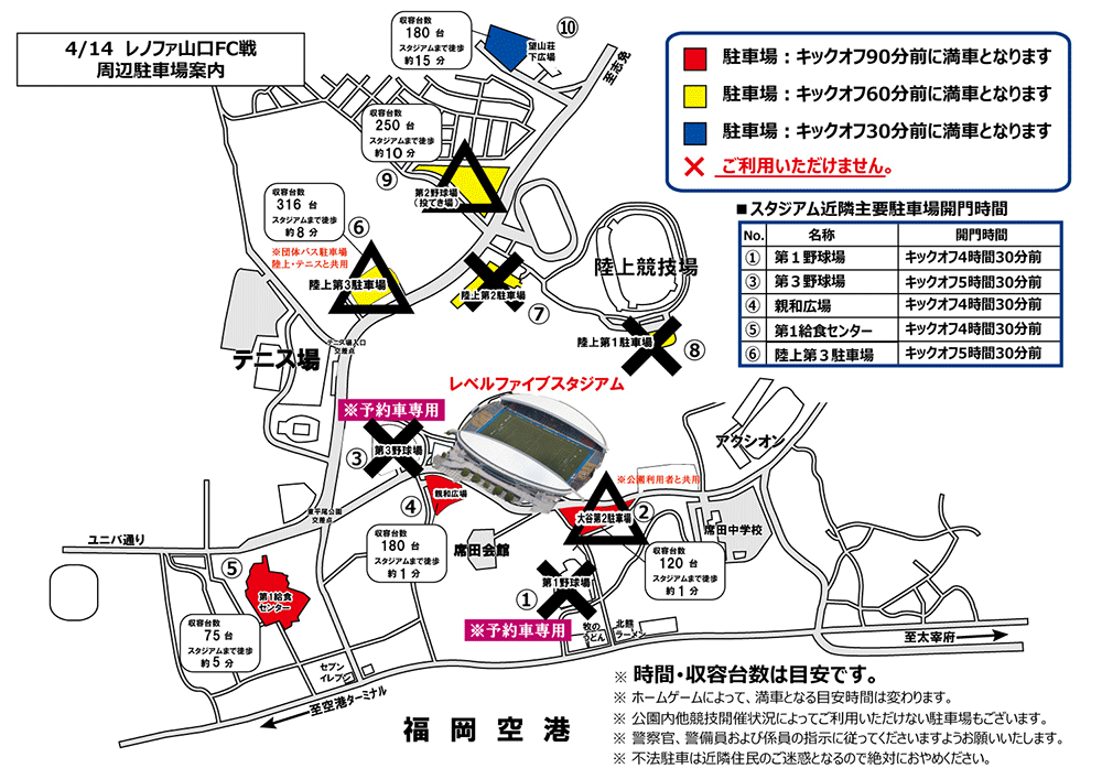 4/14(土)山口戦のレベルファイブスタジアム周辺駐車場についてご案内いたします。