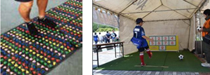 足つぼマットの上で助走をつけてゴールを決めよう!決して罰ゲームではありません!
