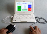 ※指先をセンサーに乗せるだけで、簡易に血管年齢を測定します。