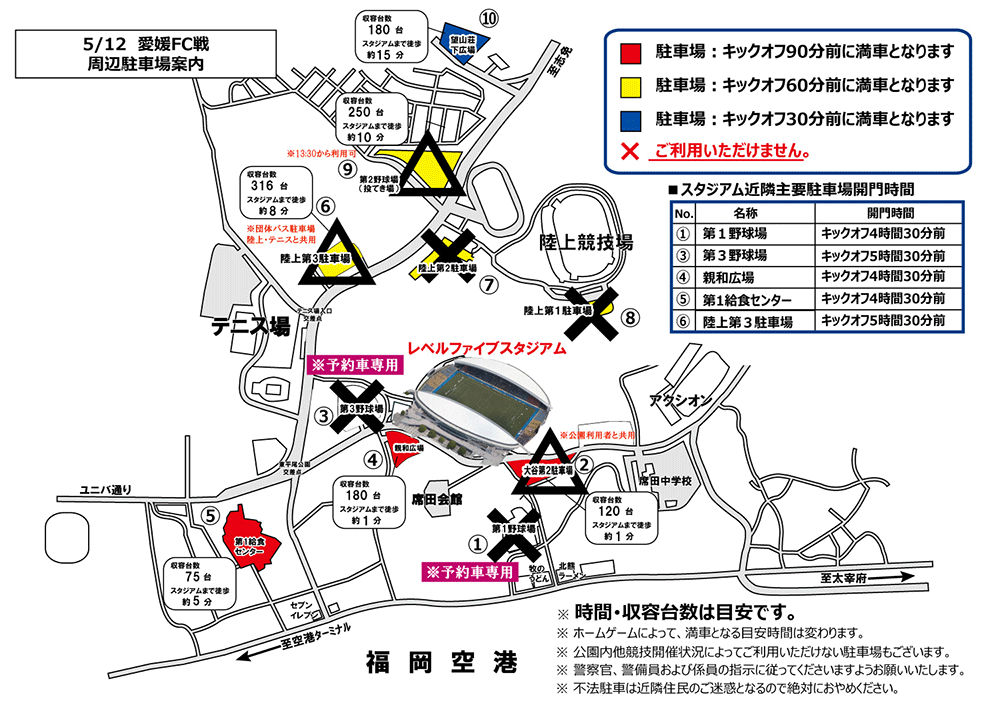 5/12(土)愛媛戦のレベルファイブスタジアム周辺駐車場についてご案内いたします。