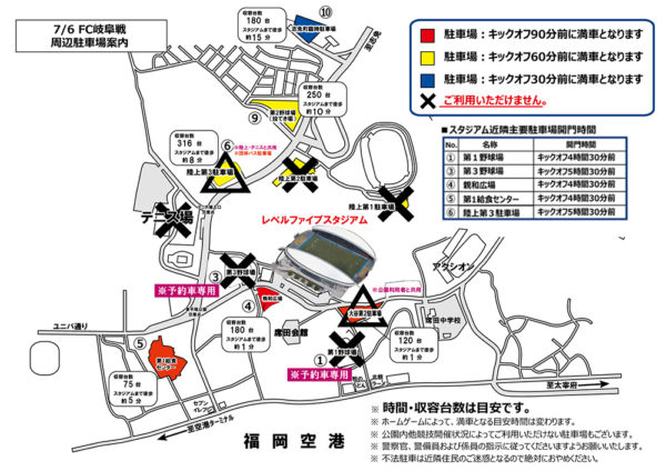 7/6(土)FC岐阜戦のレベルファイブスタジアム周辺駐車場についてご案内いたします。