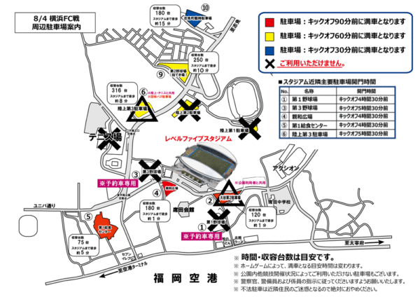 8/4(日)横浜FC戦のレベルファイブスタジアム周辺駐車場についてご案内いたします。