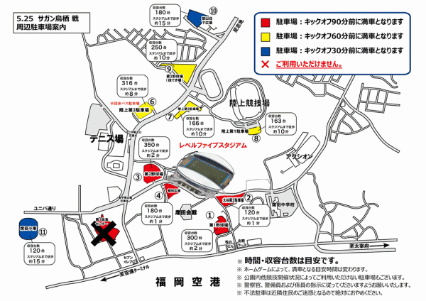 5/25(水)サガン鳥栖戦のレベスタ周辺駐車場について
