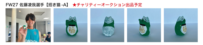 チャリティーオークションの博多人形には、桐箱に選手の直筆サイン、メッセージと宛名(希望者のみ)を入れてお届けいたします。