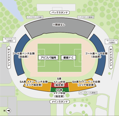 ・メインスタンド・ゴール裏は、応援チームベンチ側のみご利用ください。
