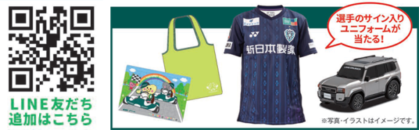 福岡トヨペットの公式LINEアカウントを友だち追加で、大抽選会に参加いただけます!選手サイン入りユニフォームや人気車種のミニカーなどが当たります!今回の大抽選会では、10月に直方市にて開催予定の音楽フェス「メイク ア モノガタリ」のペアチケットもあり、さらにパワーアップして豪華景品を大放出!