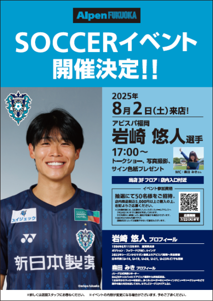 『Alpen FUKUOKA SOCCER イベント』開催のお知らせ