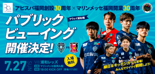 アビスパ福岡創設30周年 × マリンメッセ福岡開業30周年 7/27(日) アウェイ浦和戦 パブリックビューイング開催決定!