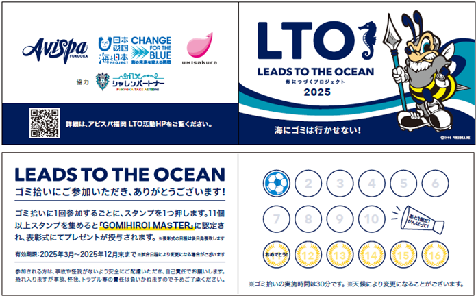 「LEADS TO THE OCEAN(通称:LTO)海につづくプロジェクト」とは、「海にゴミは行かせない!」をテーマに海をきれいにすることを目的としたゴミ拾い活動です。海ゴミの約8割が川、街からやってきます、街のゴミは人の心が出します。このスタジアムのゴミも海へと続いていくのです。今シーズンからスタジアム周辺のクリーン活動を継続的に実施していきます。