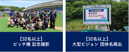 また、合計32名以上にてお申し込みをいただきますと、「ピッチ横記念撮影」と「大型ビジョン団体名掲出」の実施も可能です。