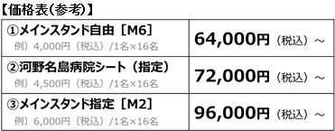 ・試合によってお申し込みができない場合がございます。詳しくはお申し込み確認のご連絡時に営業担当までお尋ねください。
