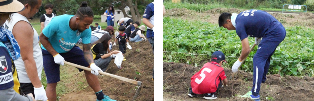 アビスパ福岡の練習場がある雁の巣レクリエーションセンターにて選手と一緒に芋掘りを体験するふれあいイベントです。