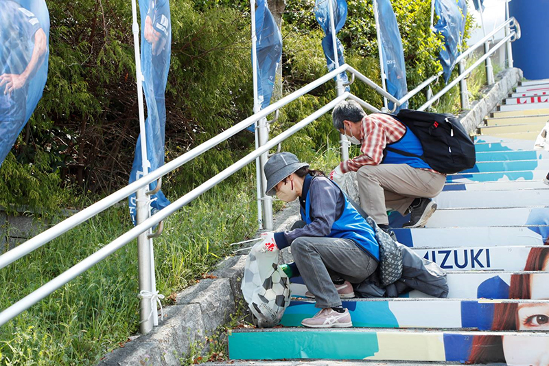 ファン・サポーターの皆さまと共に、スタジアム周辺の清掃活動を行います。