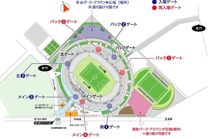 再入場ゲート:メイン4ゲート、バック1ゲート、バック3ゲート