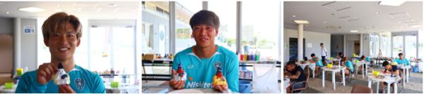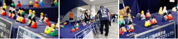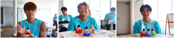 同じ福岡を拠点に活動している、はかた伝統工芸館とアビスパ福岡がこの様な活動を続けていく事で伝統文化とスポーツ文化が振興、普及していく事が出来ればいいなと思います。選手たちは真剣にそして楽しみながら心を込めて博多人形福の神の絵付けをし、選手一人一人の個性が存分に発揮されていると思います。