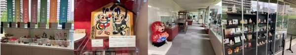 (3)選手有志たちがこの展示会のために新たに絵付けした「福の神」の作品を展示。