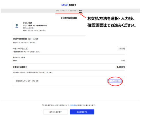 入力前に確定をするとクーポンの適用ができませんので、ご注意ください。