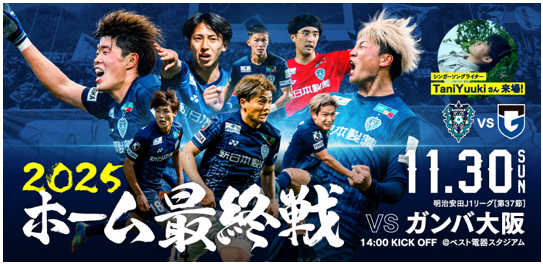 11/30(日)開催の2025明治安田J1リーグ第37節ガンバ大阪戦にスペシャルゲストとして来場いただくシンガーソングライターTani Yuukiさんのイベント内容についてお知らせいたします。