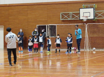 あいにくの雨模様のため、今回は初めての室内開催となりましたが、子どもたちの楽しそうな声が飛び交い、笑顔でいっぱいの楽しいサッカー教室となりました。