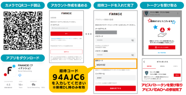 FiNANCiEアプリをダウンロードし、招待コード【 94AJC6 】を入力して利用開始してください。