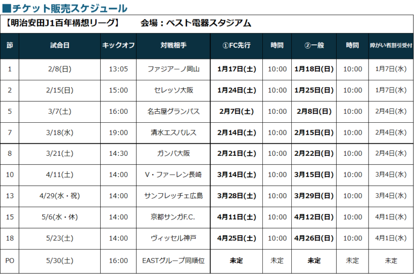 明治安田J1百年構想リーグ チケット発売スケジュールのお知らせ