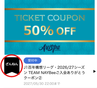 J1百年構想リーグ・2026/27シーズン TEAM NAYBee ご入会ありがとうクーポン②