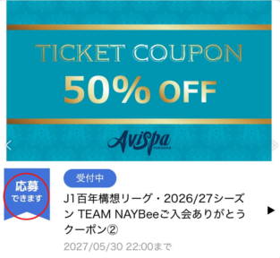 アビスパ福岡オフィシャルファンクラブ TEAM NAYBee ご入会特典「チケット割引クーポン」の取得方法についてご案内いたします。