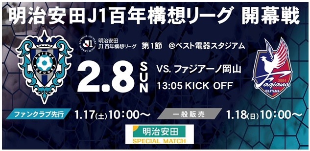 明治安田J1百年構想リーグ開幕! 2/8(日)岡山戦 チケット販売のお知らせ