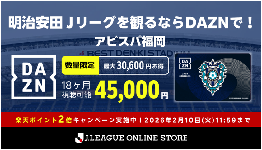 明治安田百年構想リーグ開幕記念! DAZN 2026&26/27シーズン年間視聴パス(18ヶ月)のご購入で楽天ポイント2倍キャンペーン