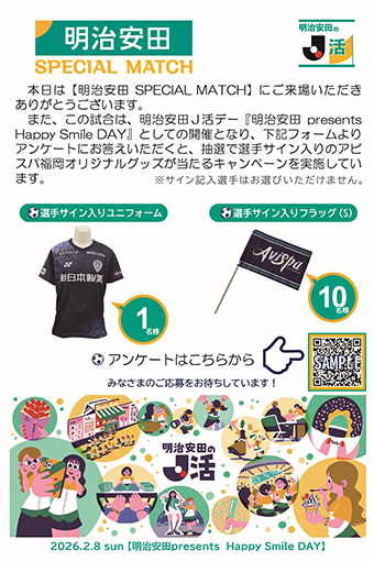 また、この試合では、明治安田のJ活デー『明治安田presents HappySmile DAY』としてイベントを実施いたします。