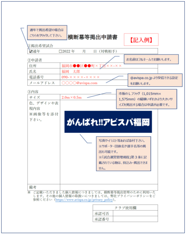 また、2022~2025シーズンに申請・承認された横断幕等はあらためての申請は不要です。
