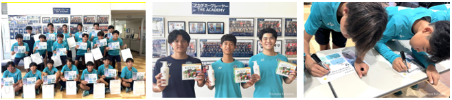 七夕に合わせて、アビスパ福岡トップチームの選手からアカデミー選手への直筆メッセージが入った七夕カードを作成いただきました。その七夕カードにはアカデミー選手による夢や願いが記され、目標に向かって努力する決意を新たにする機会となりました。さらに、「パーフェクトワン トリートメントシャンプー」「朝イチスッキリ!青汁サラダプラス」など人気商品をプレゼントいただきました。