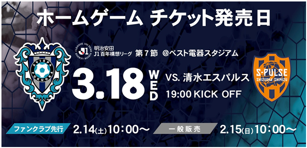 今週末より、3月18日(水)清水エスパルス戦のチケット販売を開始いたします。
