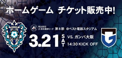 3月21日(土) 14:30キックオフ ガンバ大阪戦