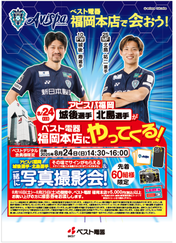 この度、アビスパ福岡株式会社(本社:福岡市、代表取締役社長:西野努)は、株式会社ヤマダデンキ 九州ヤマダ ベスト事業部(事業部:福岡市 ベスト事業部 事業部長:北添勇人)と、2026シーズンのアカデミーユニフォーム・パートナー契約を更新しましたので、ご報告いたします。公式アカデミーユニフォームスポンサー(胸)として同社ロゴを掲出いたします。