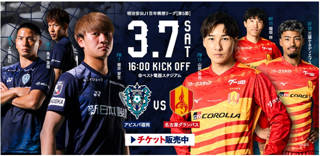 3/7(土)の明治安田J1百年構想リーグ第5節名古屋グランパス戦(16:00キックオフ/ベスト電器スタジアム)もわくわくイベント盛りだくさんで皆様のご来場をお待ちしています。ぜひご参加ください。