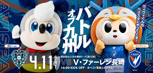4/11(土)長崎戦 チケット販売のお知らせ 九州の頂点へ譲れない戦い!ヴィヴィくんも来場!
