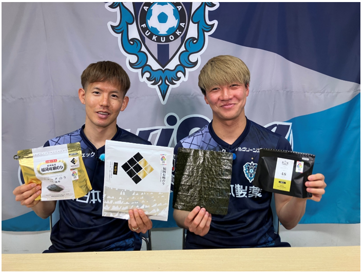 アビスパ福岡では、明治安田J1百年構想リーグ第8節ガンバ大阪戦[3月21日(土)14:30キックオフ/ベスト電器スタジアム)にて、昨年に引き続き「福岡有明のり」特設ブースを出展いたします。今年のプロモーション動画には、見木選手と碓井選手が出演し、「福岡有明のり」を試食しました!当日はブースにお立ち寄りください!